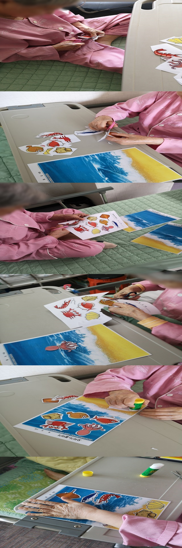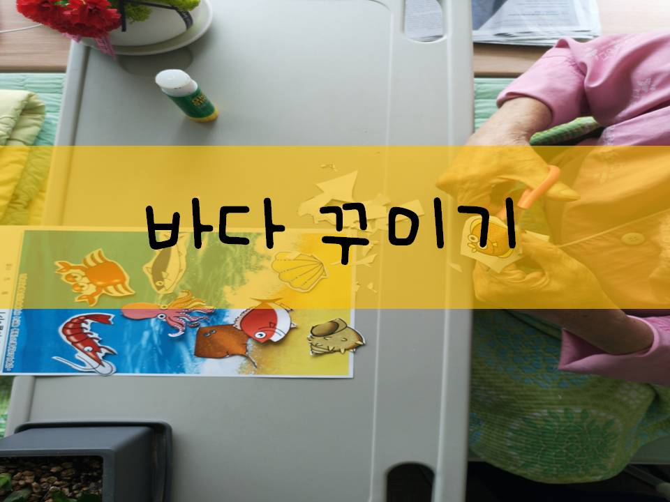 오늘은 종이를 오려서 붙이는 바다꾸미기 프로그램을 진행했습니다 ^^