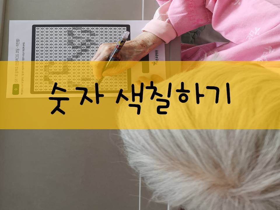 숫자 0과 1이 뒤섞인 컴퓨터화면 그림속에서 숫자 1만을 골라내 색칠하기를 진행했습니다. ^ㅡ^