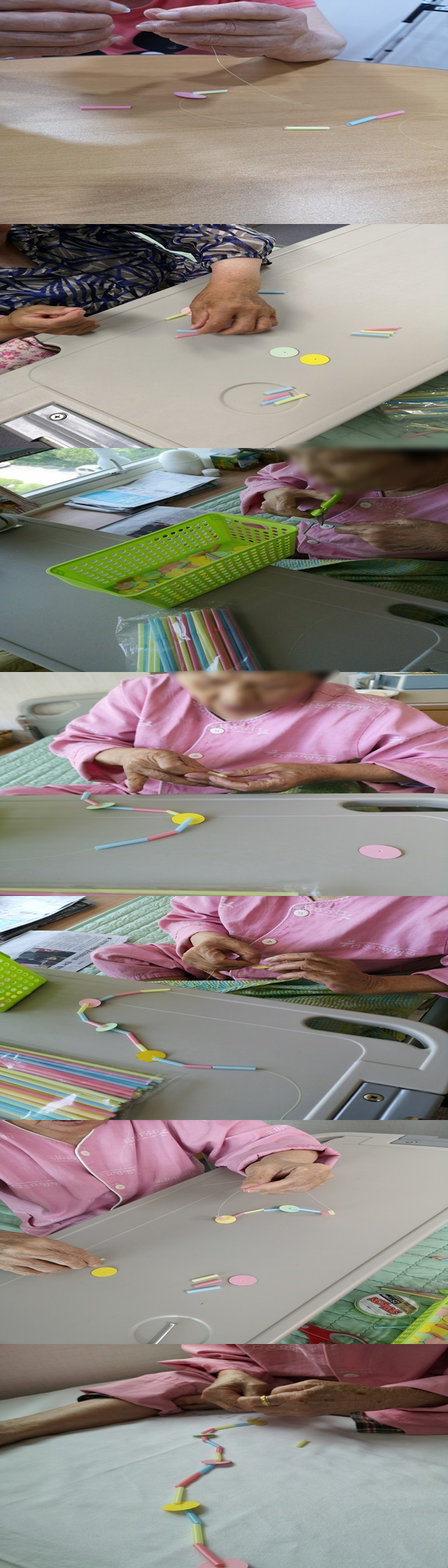 금일 프로그램으로는 빨대로 목걸이를 만들기를 진행하였습니다.