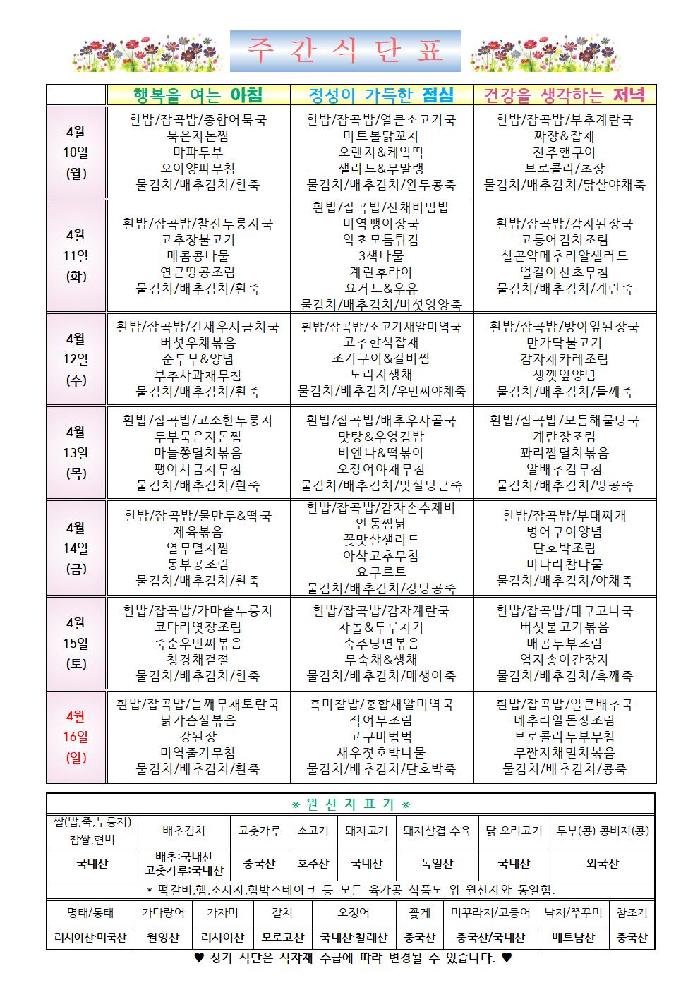 2023년 4월 3주차 식단표