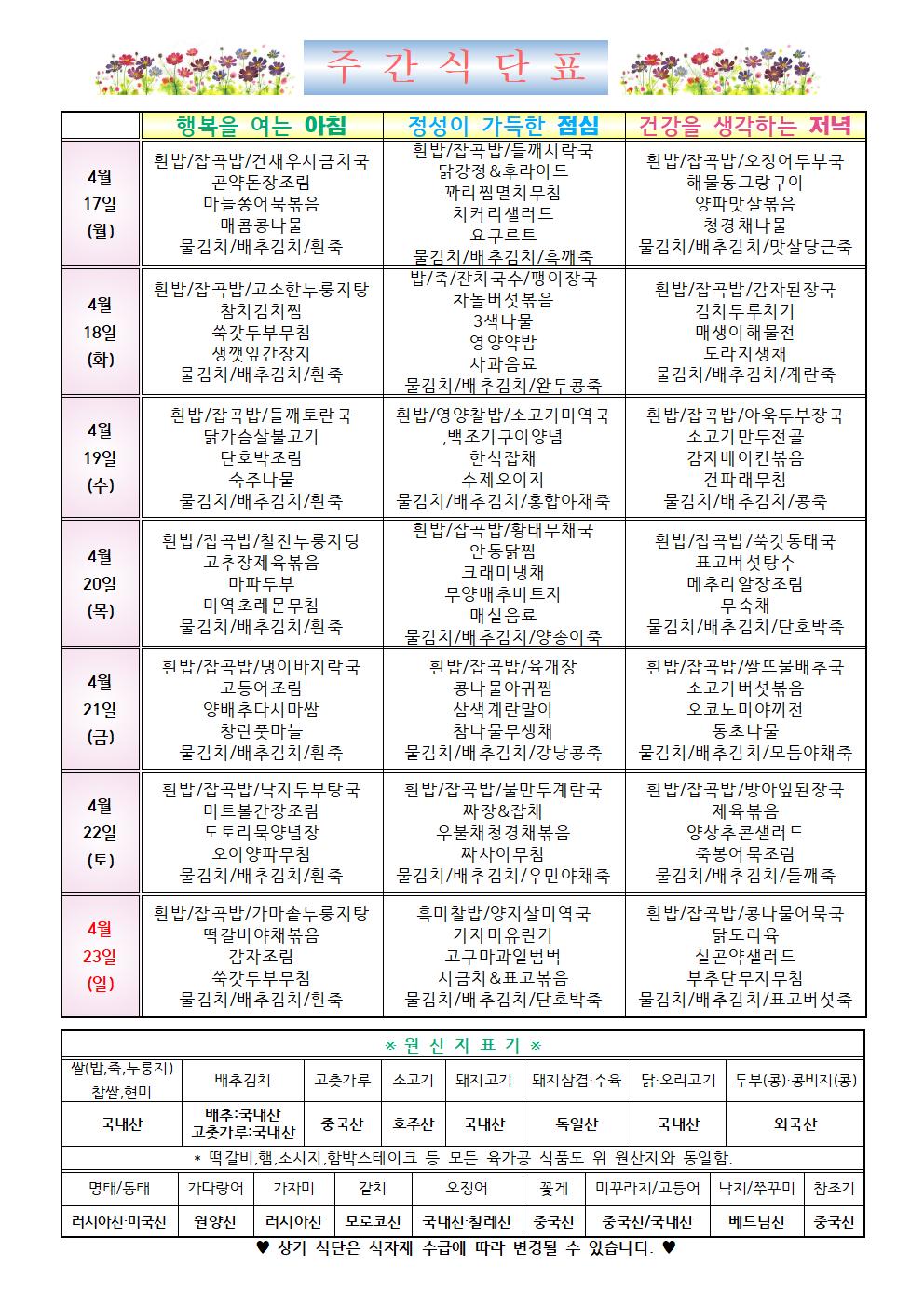 2023년 4월 3주차 식단표