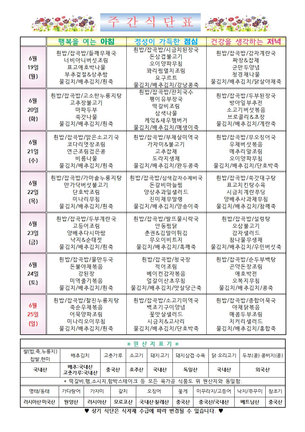 2023년 6월 3주차 식단표