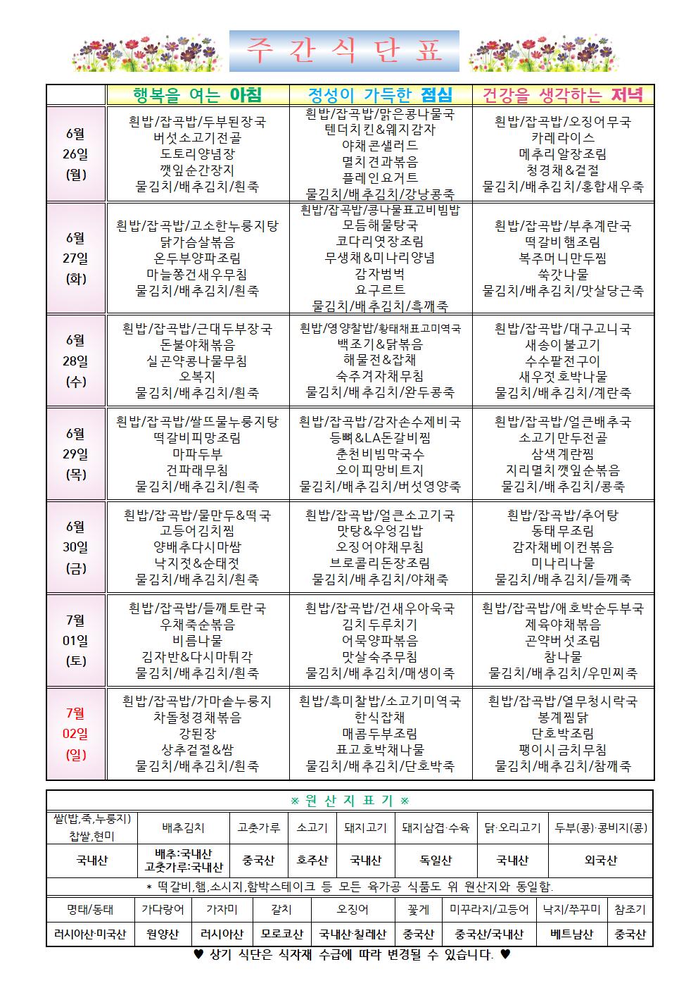 2023년 6월 3주차 식단표