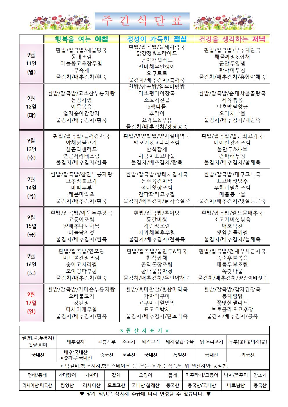 2023년 9월 3주차 식단표