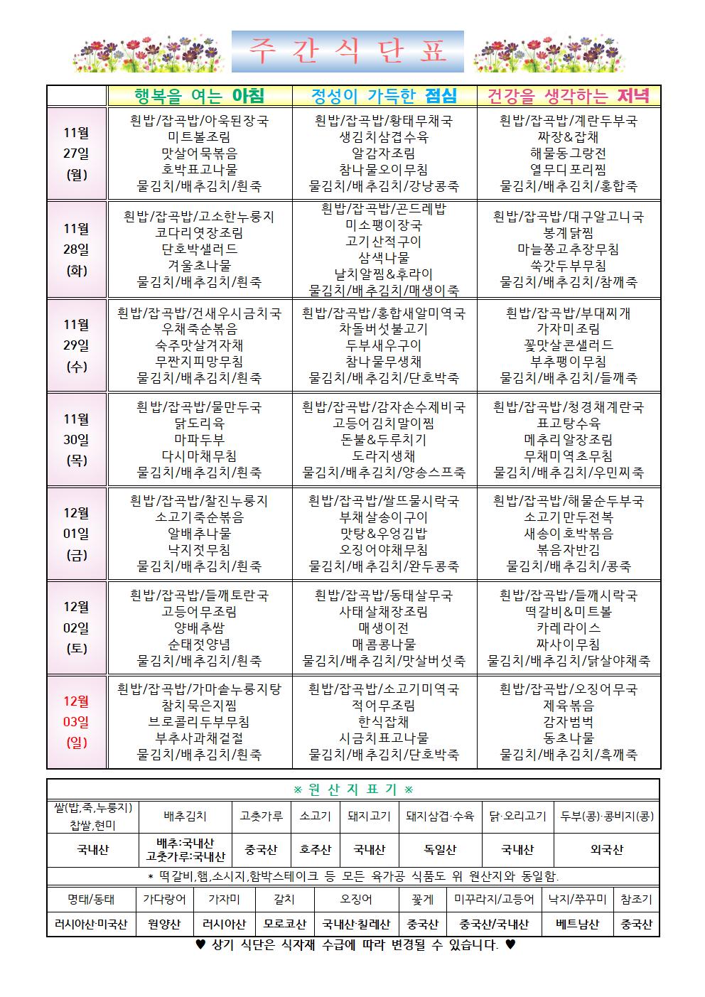 2023년 12월 1주차 식단표